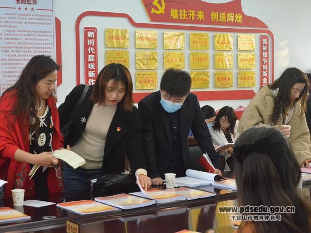 观摩组一行在市一高党委副书记、副校长李德权的陪同下,实地考察了市一高校园党建宣传展板、党员活动室等,随后在校会议室翻阅了市一高党建工作档案材料。李德权分享了学校党建工作开展经验。