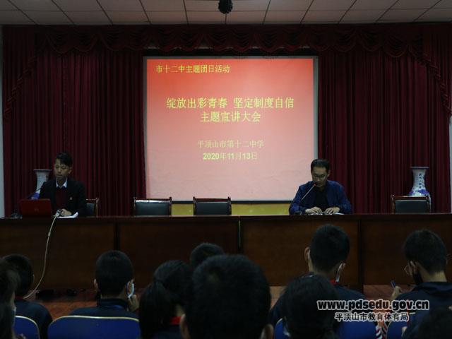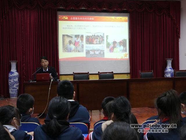 11月13日下午,市十二中邀请到了平煤神马集团七星选煤厂派驻叶县夏李乡许岭村第一团支部书记李永恒,在五楼演播厅为全校师生做了一场“坚定理想信念,做合格接班人”主题报告会。