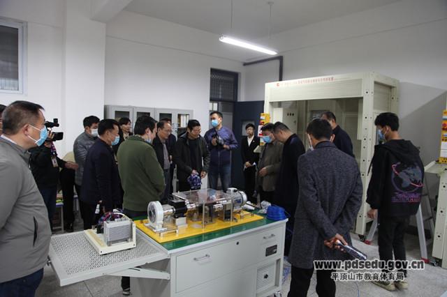 在实训楼,胡献民一行先后察看了电工维修实训室、电器安装实训室、电商实训室、点钞实训室、智能楼宇实训室和数控加工实训室,听取了实训中心主任、电子电器部部长对实训工作及相关实训设备的介绍。胡献民强调,职业教育不能只学理论,要重视和突出实践教学、实训实习,切实提高学生的实际操作能力;必须进一步加强校企合作,提升学校实训能力,对口培养企业急需的高质量技能型人才。