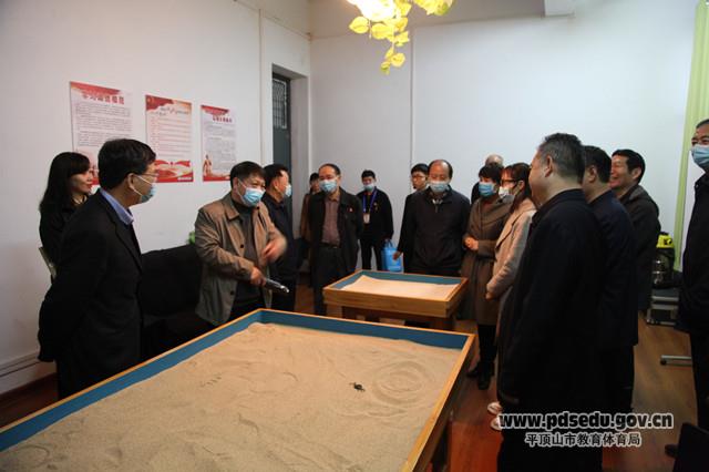 在心理咨询中心,学校专(兼)职心理教师马建华、文艺平向胡献民一行介绍了职业学校心理咨询工作的意义和作用,如何使用心理沙盘、音乐、团队游戏等对青少年进行心理辅导与矫正。调研组成员还饶有兴致地体验了一下音乐心理疗法。胡献民对学校高度重视和认真做好青少年心理健康工作的做法给予高度评价,他指出,中等职业学校青少年更容易出现和存在这样那样的心理问题,关注心理健康,扎实开展好相关心理咨询和辅导,对青少年的健康成长与成才十分重要。