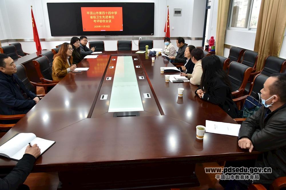 11月18日上午,市爱卫办副主任桑艳敏等一行六人莅临市四十四中进行省级卫生先进单位考评验收,学校领导班子成员陪同检查。