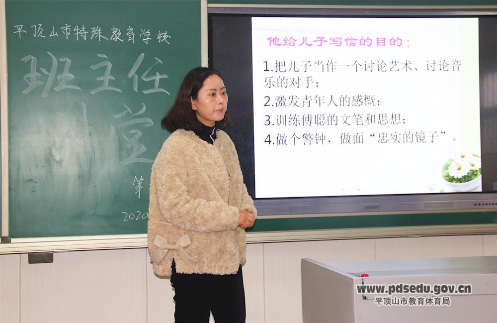 开讲了!开讲了!11月24日下午第一节课,七年级教室里,市特殊教育学校的所有班主任老师聚集一堂,由七年级班主任老师韩晓瑞主讲第六期班主任大讲堂。大讲堂由政教处主任何克珍主持,主管政教的副校长石春山参与听讲,校长王绪顶也现场指导。