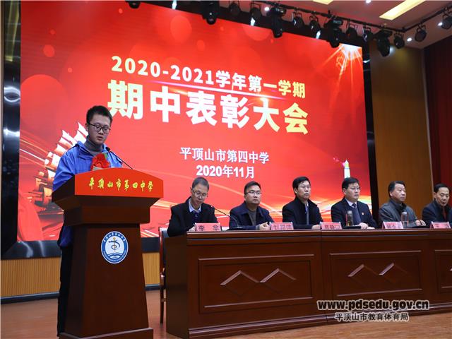11月25日下午,为表彰优秀、鼓励先进、树立典型,进一步鼓舞全体教师工作热情,激发学生学习的积极性,市四中隆重举行了2020——2021学年第一学期期中考试表彰大会。班子成员、全体教师及受表彰学生集体参加大会,其余学生在教室收看表彰大会现场直播。表彰大会由教务主任李芈主持。