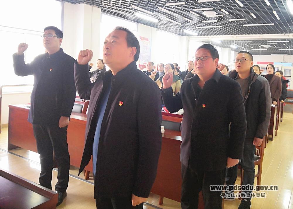 党支部严格按照“6+X”党日活动模式开展主题党日活动。活动中,会议室悬挂党旗,党员佩戴党员徽章、齐唱国歌、重温入党誓词、缴纳11月份党费,副校长石春山领学《中国共产党章程》节选。