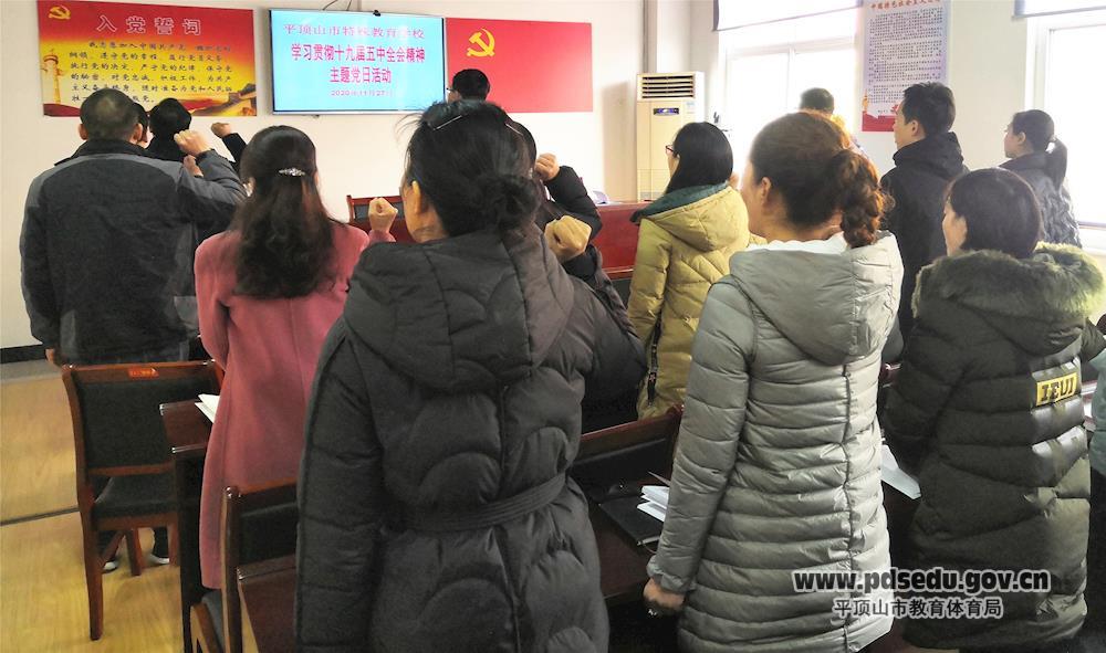 11月27日上午,市特殊教育学校党支部在党员活动室开展了主题党日活动,深入学习贯彻党的十九届五中全会精神,全体党员参加了此次党日活动。