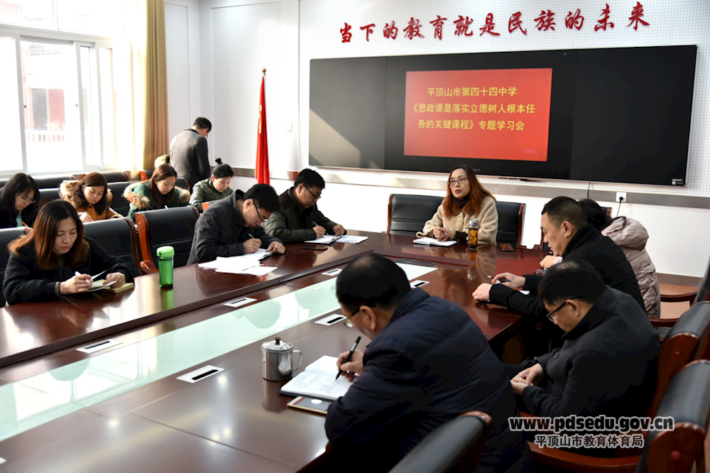 根据市教体局的统一要求和部署,为深入学习贯彻落实《思政课是落实立德树人根本任务的关键课程》文章精神,彰显学校立德树人的根本价值理念,用好课堂教学主渠道,提升育人能力和水平,市四十四中积极行动、扎实推进,11月27日上午,召开了专题学习会,会议由副校长王玲主持。