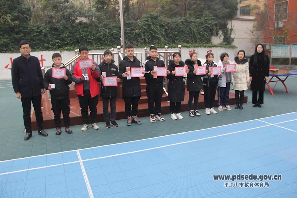 校长王绪顶、校长助理李乐乐分别向获奖同学颁发荣誉证书和奖品。颁奖结束后王绪顶向获奖同学表示祝贺,同时鼓励同学们积极参加体育锻炼,有一个健康的体魄去迎接接下来的学习和生活。