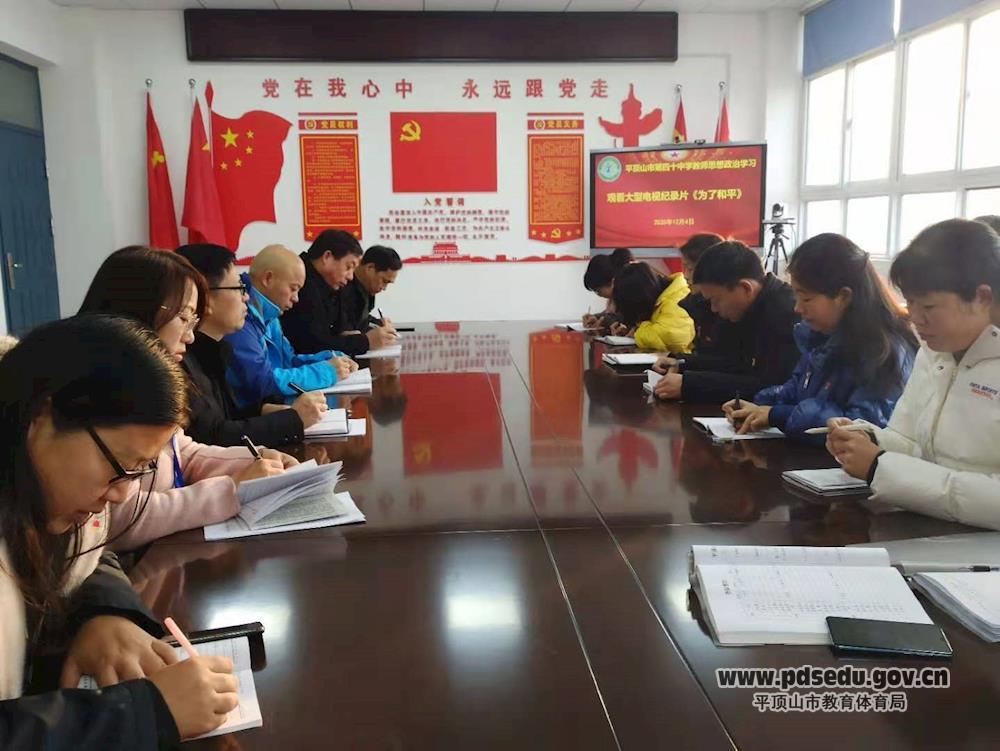 为深入贯彻落实习近平总书记在纪念中国人民志愿军抗美援朝出国作战70周年大会上的重要讲话精神,大力弘扬伟大的抗美援朝精神,加强新时代爱国主义教育,教育引导广大师生厚植爱国主义情怀,弘扬爱国主义主旋律,做学生的爱国主义引导者,12月4日,市四十中组织教师观看大型电视纪录片《为了和平》。此次活动在明道楼四楼党员活动室召开。