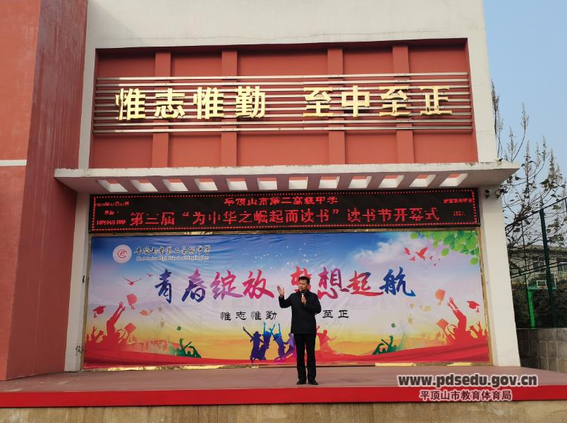 12月7日上午,学校举行了第三届“为中华之崛起而读书”读书节活动开幕仪式。开幕式上,校长张建岭指出:读书与国家富强、民族复兴有着千丝万缕的重要关系,只有不断丰富自己、提高自己,才能为我们的中国梦和中华民族伟大复兴做出贡献。勉励同学们要把国家和个人联系在一起,多读书,读好书,为国家及社会发展做出自己的贡献。随后,团委书记崔珊珊宣读了本届读书节具体活动方案,鼓励同学们积极组织,踊跃报名参加活动,为学校的“书香校园”建设贡献力量。