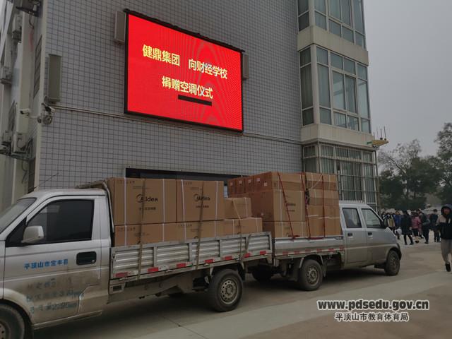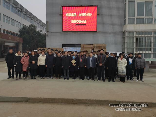12月1日上午,健鼎(湖北)电子有限公司向市财经学校捐赠空调仪式在市财经学校西校区举行。健鼎集团人力资源部副总经理孙海玲、市财经学校校长马庆业、副校长孙国甫出席捐赠仪式。市财经学校总务处、招办、电子电器专业教学部有关负责人及和电子电器专业教学部班主任老师及部分学生参加了捐赠仪式。