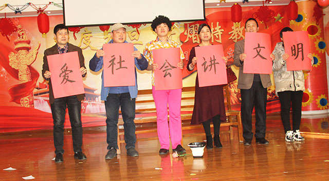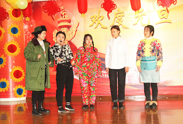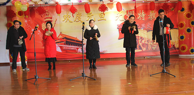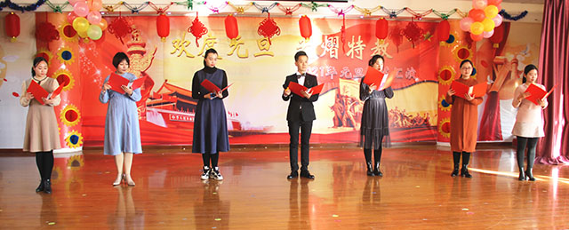 新的一年,校长王绪顶希望大家以饱满的热情,昂扬的斗志,聚精会神抓质量,一心一意谋发展,同心协力迎着朝阳起航,活动在热情洋溢的新年致辞中拉开了帷幕。各小组成员精心准备的节目一一上演:三句半《特教赞歌》,诗朗诵《读中国》,戏曲《朝阳沟》选段,幽默小品《小广告》、《红高粱模特队》,趣味游戏,歌舞《盛世华章》、《光阴的故事》、《杯子舞》、《可可托海的牧羊人》,手语歌舞《明天会更好》等齐聚舞台、精彩纷呈,把活动推向一个又一个高潮。教师们的表演惟妙惟肖;主持人的语言幽默风趣,于此同时,主持人的语言也变成如诗如画的手语传递给台下的听障老师;观众更是热情不减、掌声不断。