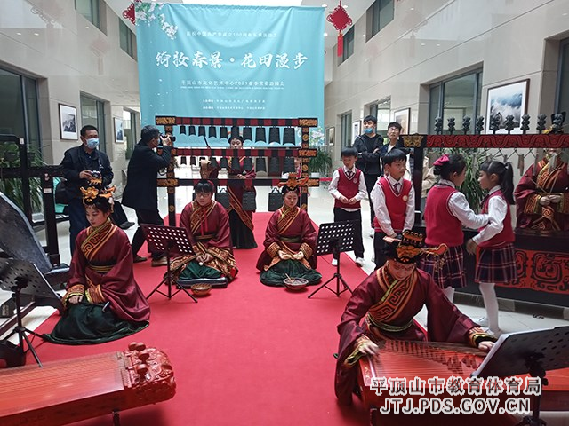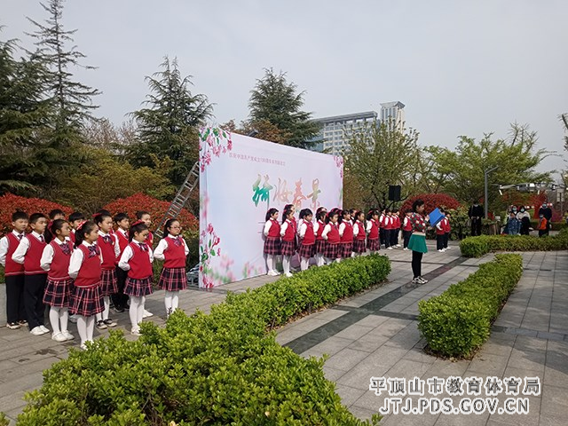 平顶山市文化艺术中心“绮妆春景”春季赏花游园会在福佑路小学61名同学集体朗诵《春》、歌唱《春晓》、吟诵《春的旋律》等节目中拉开了帷幕。