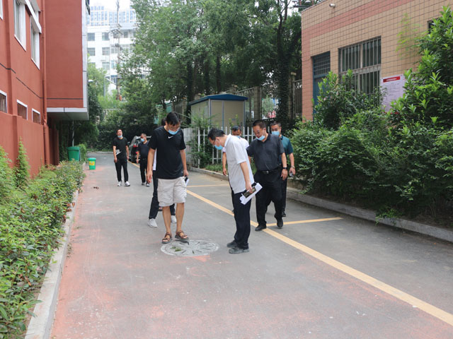会后,孙新志带领校领导班子及各处室负责人到校园进行隐患排查,重点检查了防汛物资准备、实验室、下水道、车子棚、配电箱、围墙、施工场地等,及时安排人员排除隐患。