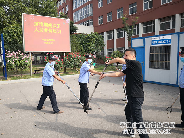 为进一步提升学校安保人员的安防能力和服务意识,切实加强学校的疫情防控期间的安全保卫工作,8月21日下午,市四中对学校安保人员进行了疫情防控期间安全保卫工作培训。