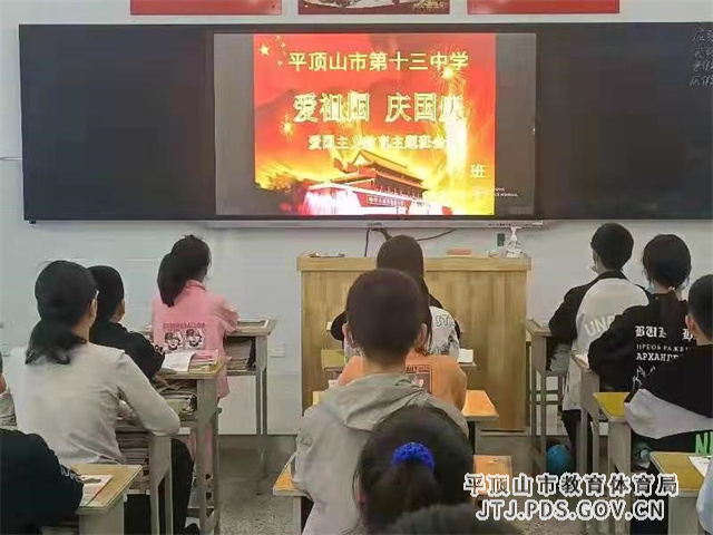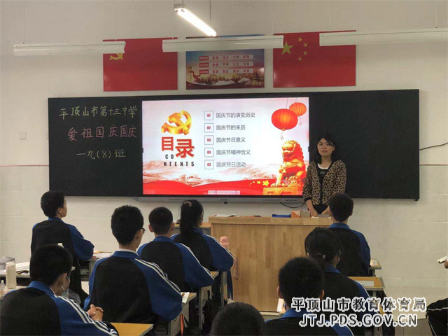 为庆祝新中国成立72周年,大力弘扬爱国主义精神,9月27日下午市十三中学组织开展以“爱祖国,庆国庆”为主题的班会活动。
