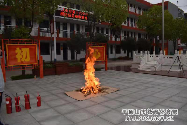 随着演练总指挥副校长茹建峰发出的紧急疏散哨声响起,全体工作人员迅速进入各自岗位,指挥学生有序的进行安全疏散演练。学生按照指定的安全出口和疏散路线,迅速有序地撤离教学楼,疏散到安全地点,整个疏散演练活动使用了2分20秒。在疏散演习中,学生保持了快速反应的能力和安全良好的秩序,并在现场进行了消防灭火演习,取得了良好的演习成效。