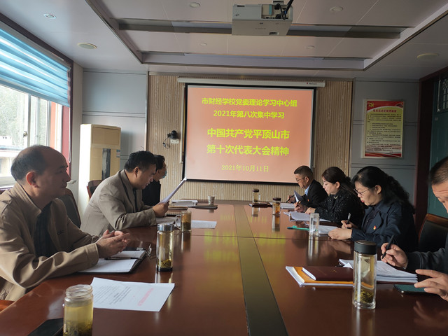 10月11日上午,市财经学校党委理论学习中心组在四楼会议室开展2021年第八次集体学习研讨活动,学习研讨河南省委工作会议和中国共产党平顶山市第十次代表大会精神。