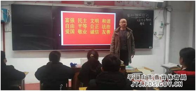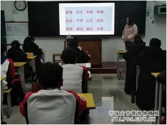 在20号下午的主题班会上,各班集体学习背诵“社会主义核心价值观”,在老师的进一步讲解下,对这24个字有了更加深刻的理解。市八中以“文明城市”创建活动为契机,培养广大师生传播文明、弘扬新风,号召广大师生在创建文明城市工作中积极参与,在创建环境优美、经济富裕、文化繁荣、社会和谐的城市中发挥才智,贡献力量。