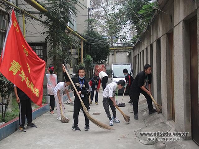 为创建全国文明城市,清洁城市环境,9月28日下午,市十三中志愿者在社区家属院开展创文明城市志愿服务活动。