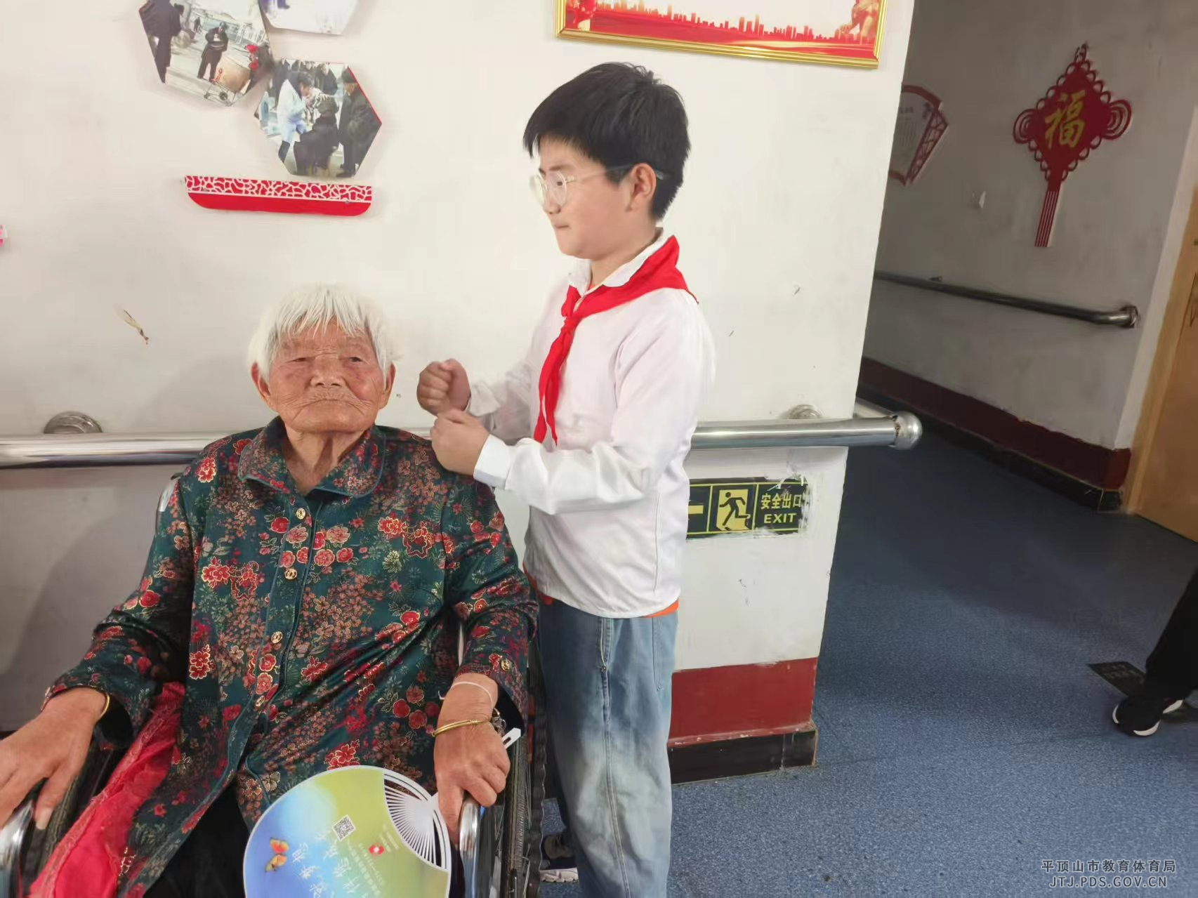 大家为老人们捶背、捏腿,用稚嫩却真诚的话语关心着老人们的身体状况,让平日里安静的敬老院瞬间充满了欢声笑语。还有的队员为老人整理床铺,打扫卫生,让老人们居住舒心。