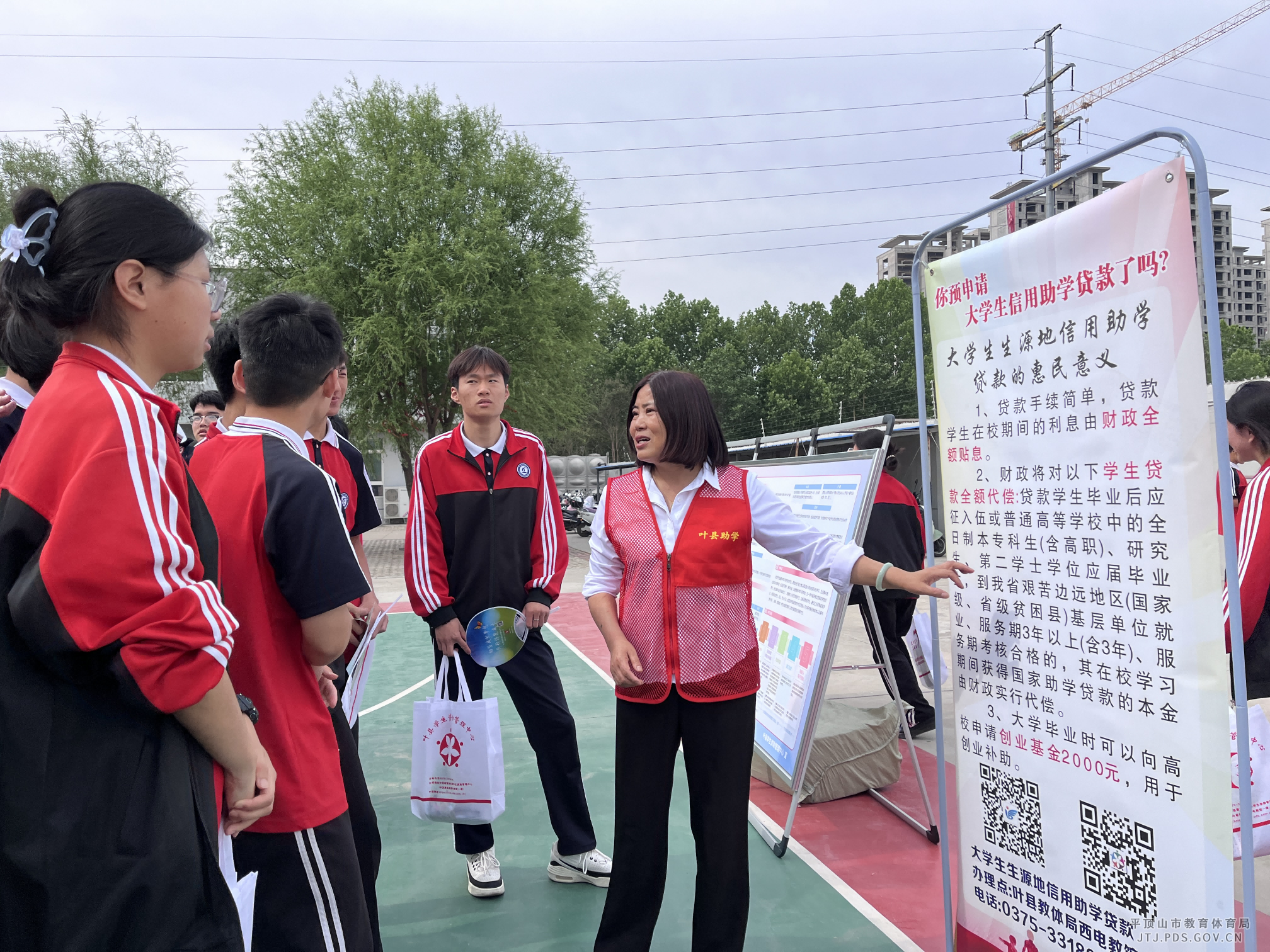 在活动现场,叶县教体局学生资助管理中心精心设置宣传展板,现场发放印有政策内容的宣传手册、手提袋、扇面和抽纸,向学生详细介绍大学生生源地信用助学贷款政策,并针对同学们关心的热点问题,如贷款额度、利息补贴等,进行细致解答。