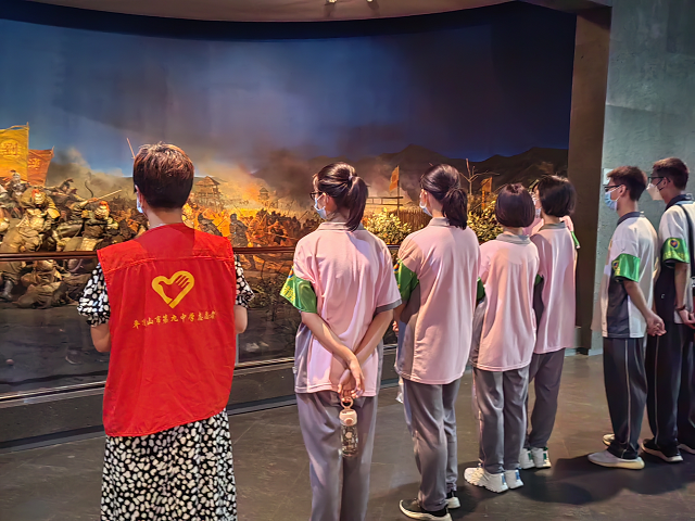 8月19日上午,市九中团委教师郭佳佳和14名学生及家长志愿者一起走进平顶山市博物馆,开展了“鹰城文化我来讲”志愿活动。