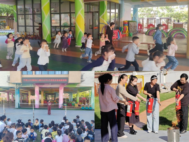 演练中,各班教师迅速行动,按照预设方案,引导幼儿用湿毛巾捂住口鼻、弯腰低姿,沿着教室墙壁快速向门外撤离。楼梯转角处,后勤工作人员安全引导,轻声提醒“慢慢走,不推挤”;操场集合点,班主任逐一点名,确保每一名幼儿都安全到达。全体师幼在预设时间内撤离至安全区域,做到了快速、有序、无遗漏,基本达到了“以练促防”的预期目标。最后,组织教师开展学习灭火器的使用方法,并现场实操练习,进一步提高消防技能。