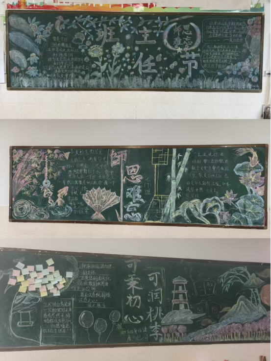 校园之中,感恩的心意从未缺席,全校学子以多样形式向班主任致以最诚挚的礼赞。各班精心打造感恩主题黑板报,以绚丽的色彩、温情的文字、创意的排版,将对班主任的敬意与感谢绘满教室;班主任肖像画创作活动中,同学们执笔勾勒,用细腻的笔触捕捉班主任的暖心瞬间,一幅幅生动的画作藏着最纯粹的喜爱与敬意;“师恩难忘,匠心育人”征文比赛里,同学们以笔墨抒怀,记录与班主任朝夕相伴的点滴故事,字里行间满是感恩与敬仰;“致敬班主任,感恩伴成长”签字墙活动前,同学们纷纷驻足,郑重写下自己的名字与祝福,以庄重的仪式感,向默默守护、悉心育人的班主任们表达最真切的谢意。