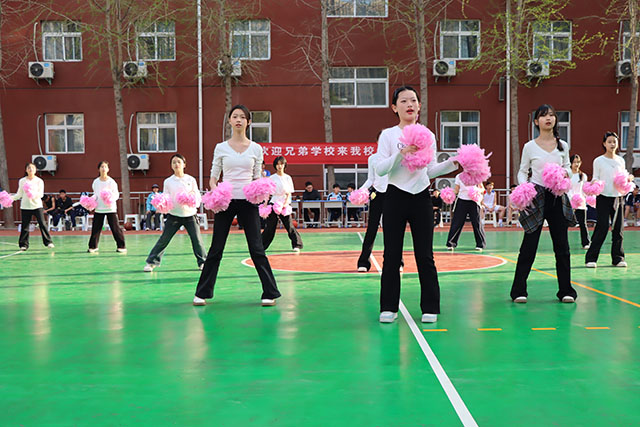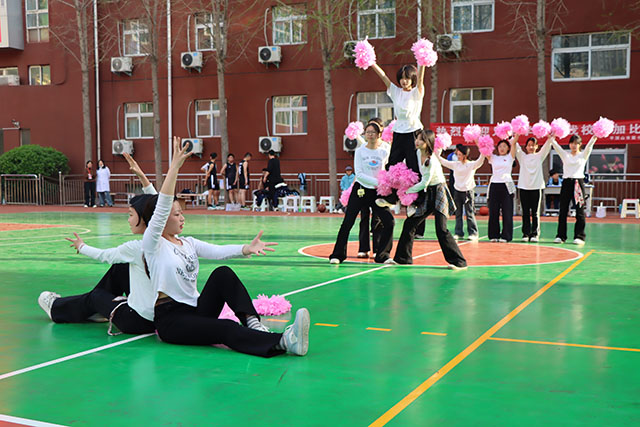 中场休息时,市第十二中学啦啦操队员们带来了活力四射的表演。她们动感的舞姿、甜美的笑容和饱满的热情,为紧张的比赛注入了青春的活力,也让现场观众感受到了校园文化的独特魅力。