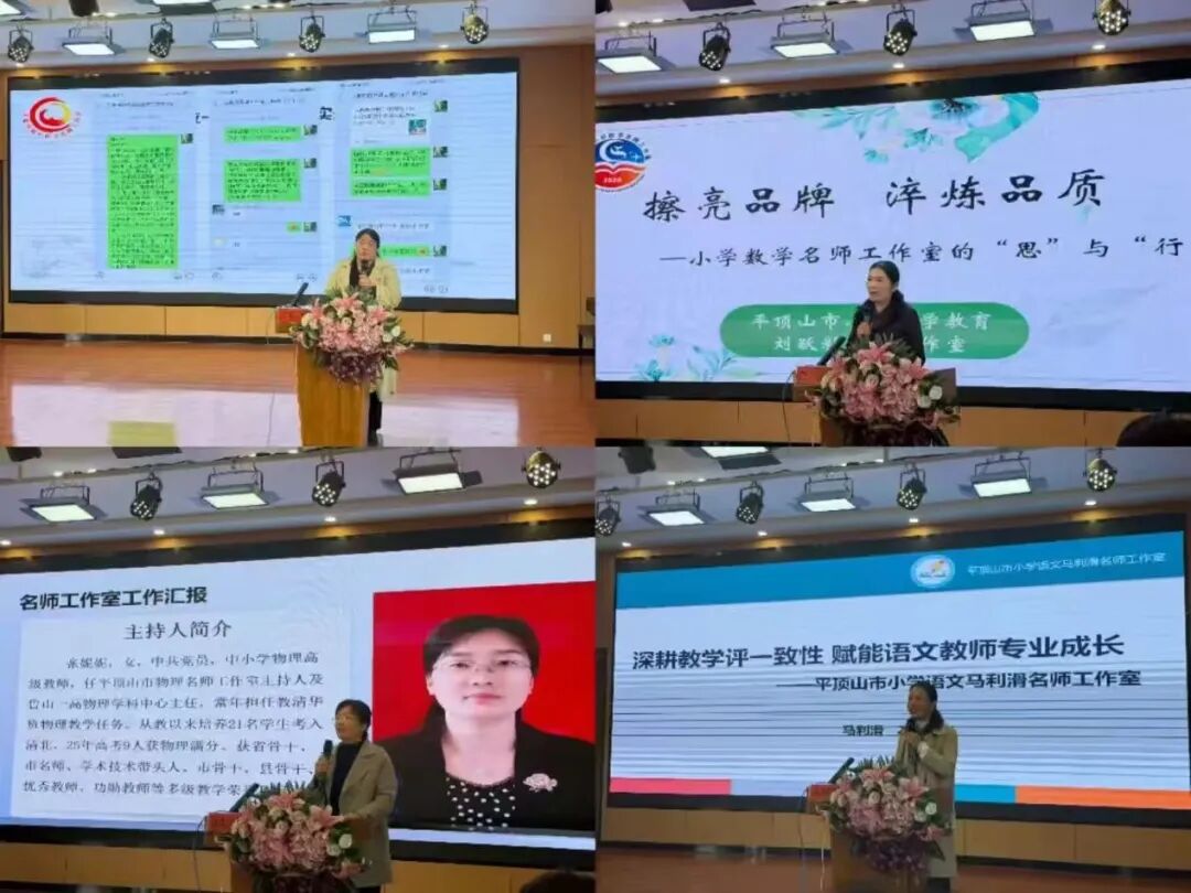 三位中原名师工作室主持人在会上作典型分享,刘晓惠以“双导师引领、三段式研修”推动名师培育落地;席明焕提出主持人要当好“设计者、教练员”,以鲜明教学主张打造工作室品牌;李慧怡分享四步进阶教学法,赋能学生全面发展。来自湛河区、叶县、鲁山县、郏县的名师工作室主持人代表依次交流发言,展示工作室在课题研究、课堂提质、梯队成长等方面的成果,充分彰显全市名师工作室百花齐放、实干实效的良好态势。