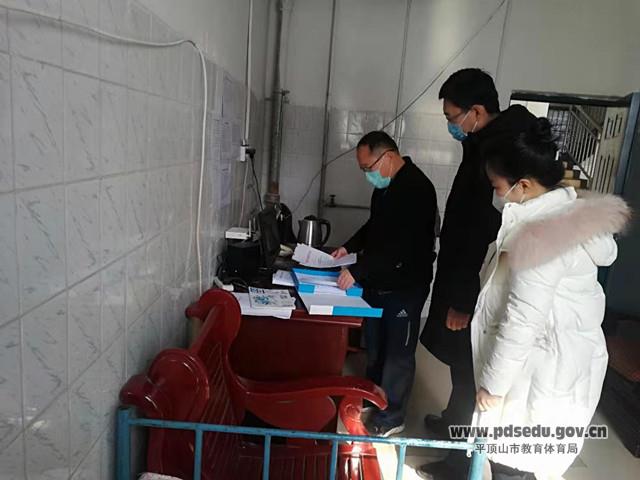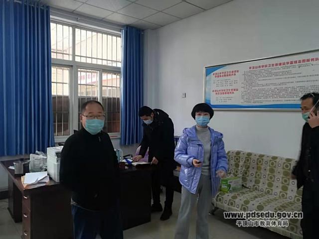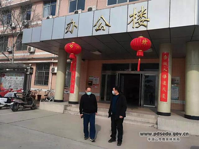 2月1日市教体局机关党委专职副书记陈成功同志到局属单位检查疫情防控和假期值班情况。